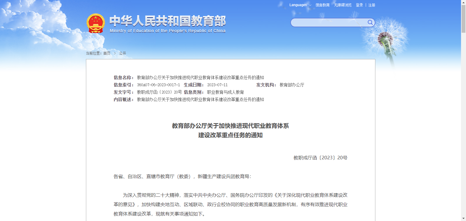 為深入貫徹黨的二十大精神,落實(shí)中共中央辦公廳、國務(wù)院辦公廳印發(fā)的《關(guān)于深化現(xiàn)代職業(yè)教育體系建設(shè)改革的意見》,加快構(gòu)建央地互動、區(qū)域聯(lián)動、政行企校協(xié)同的職業(yè)教育高質(zhì)量發(fā)展新機(jī)制,有序有效推進(jìn)現(xiàn)代職業(yè)教育體系建設(shè)改革,現(xiàn)就有關(guān)事項(xiàng)通知如下。