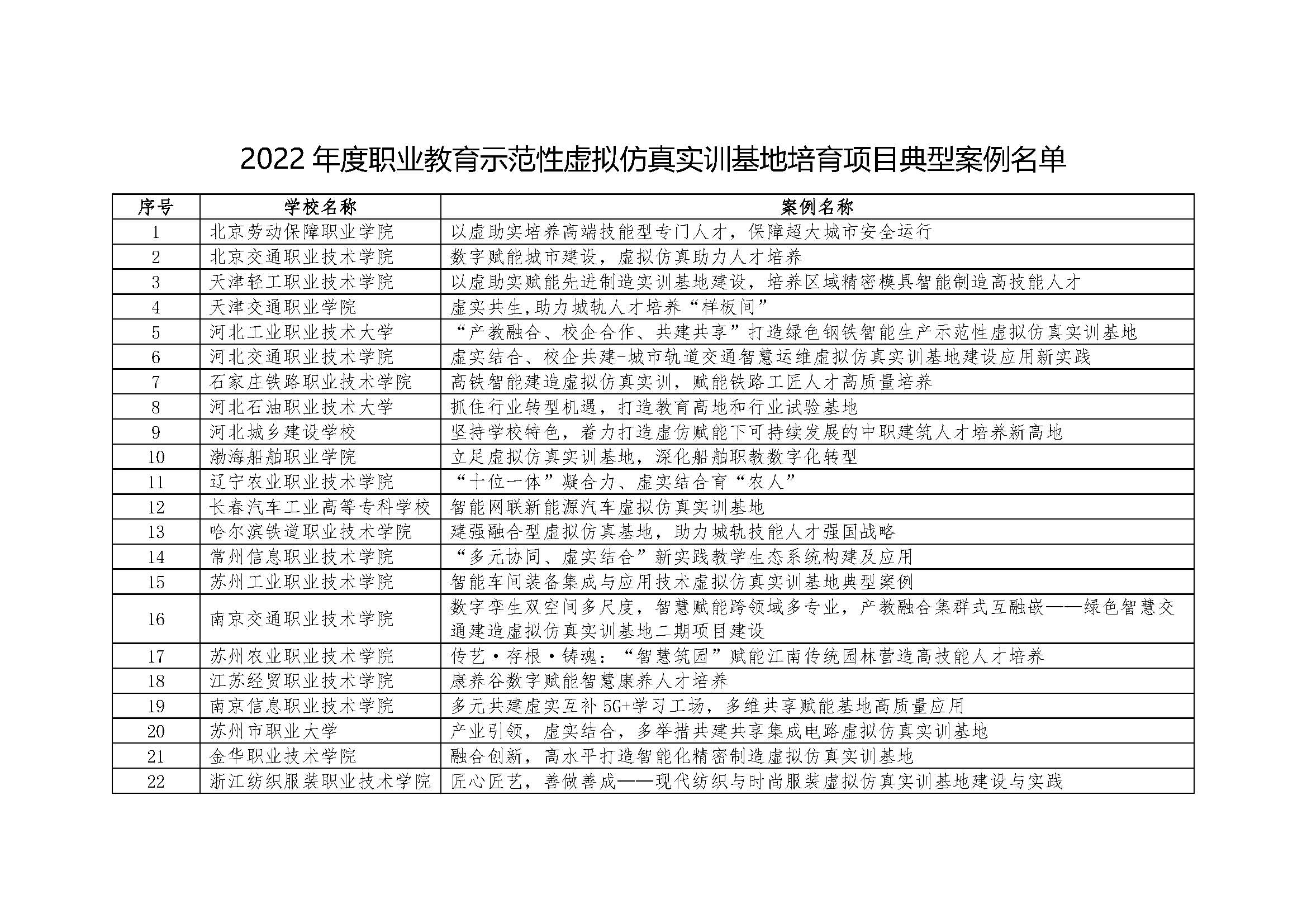 2022年度職業(yè)教育示范性虛擬仿真實訓(xùn)基地典型案例項目名單公布