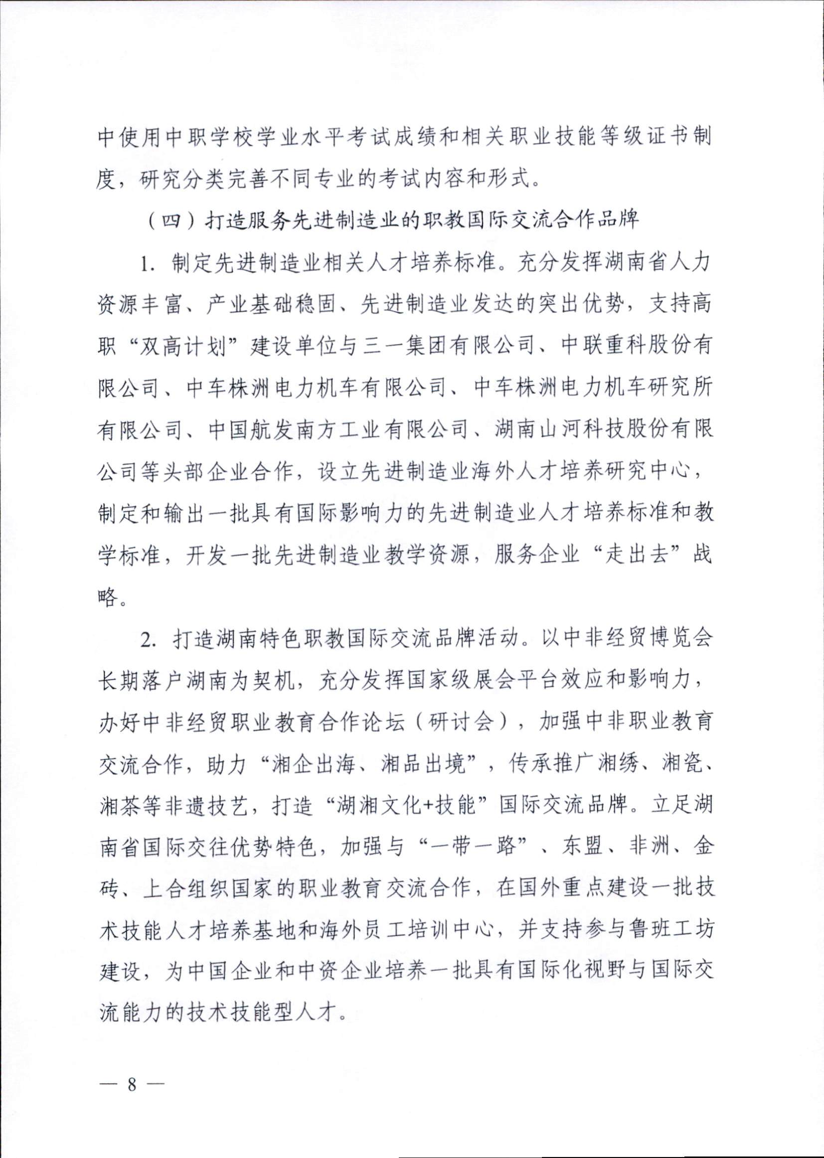 為深入學(xué)習(xí)貫徹黨的二十大精神,落實(shí)《關(guān)于深化現(xiàn)代職業(yè)教育體系建設(shè)改革的意見(jiàn)》,進(jìn)一步深化職業(yè)教育產(chǎn)教融合,助力國(guó)家重要先進(jìn)制造業(yè)高地建設(shè),依據(jù)《中華人民共和國(guó)職業(yè)教育法》,教育部和湖南省人民政府特制定本實(shí)施方案。其中重要任務(wù)中提及:2.校企共建強(qiáng)技賦能的高水平專(zhuān)業(yè)集群。重點(diǎn)圍繞工程機(jī)械、軌道交通裝備、中小航空發(fā)動(dòng)機(jī)及航空航天裝備、電子信息、新能源、新材料等先進(jìn)制造業(yè)領(lǐng)域,支持高職“雙高計(jì)劃”建設(shè)單位,建設(shè)一批與制造業(yè)主體功能區(qū)戰(zhàn)略對(duì)接的高水平專(zhuān)業(yè)集群,建設(shè)10個(gè)左右專(zhuān)業(yè)群教學(xué)資源庫(kù)、20個(gè)左右虛擬仿真實(shí)訓(xùn)基地、100門(mén)左右精品在線(xiàn)開(kāi)放課程和100本左右新形態(tài)教材,推進(jìn)優(yōu)質(zhì)資源共享,形成“院校集群+功能板塊”“專(zhuān)業(yè)集群+產(chǎn)業(yè)鏈”的產(chǎn)教融合新生態(tài)。