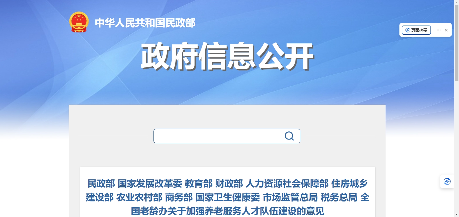 近日,為深入實施積極應對人口老齡化國家戰(zhàn)略和新時代人才強國戰(zhàn)略,民政部、國家發(fā)展改革委、教育部、財政部、人力資源社會保障部、住房城鄉(xiāng)建設部、農業(yè)農村部、商務部、國家衛(wèi)生健康委、市場監(jiān)管總局、稅務總局、全國老齡辦等12部門聯(lián)合印發(fā)了《關于加強養(yǎng)老服務人才隊伍建設的意見》(以下簡稱《意見》)。