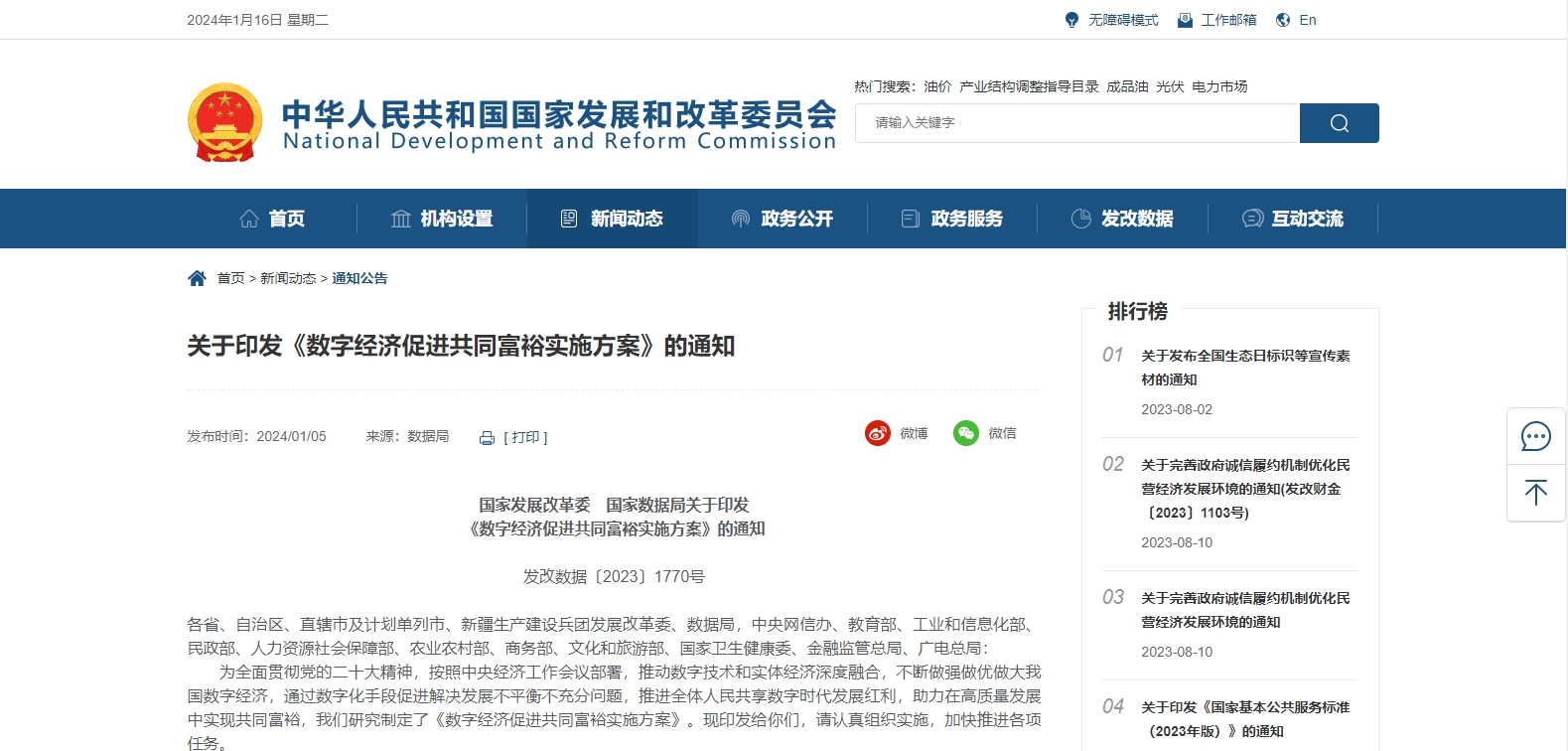 國家發(fā)展改革委、國家數(shù)據(jù)局印發(fā)《數(shù)字經濟促進共同富裕實施方案》