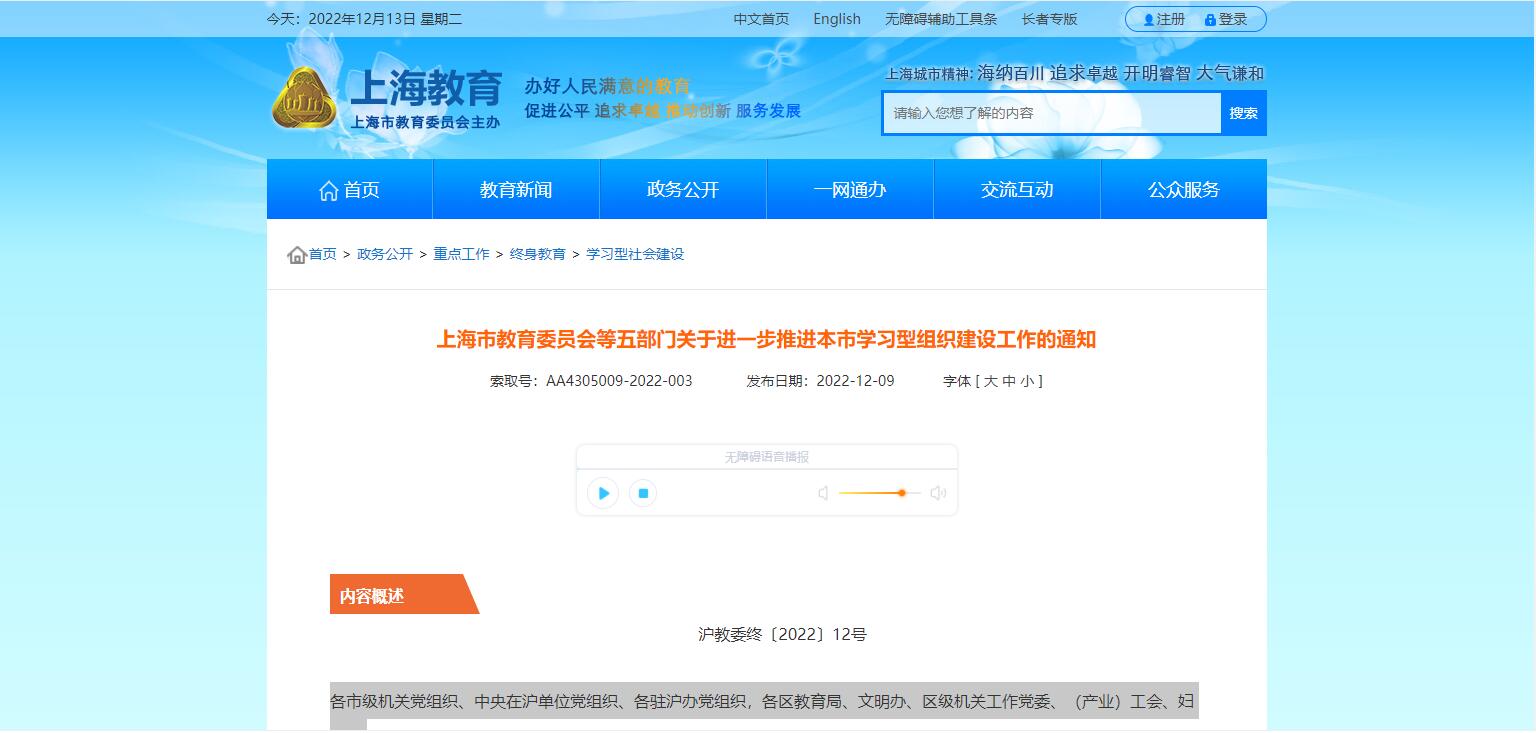 近日,上海市教育委員會等五部門發(fā)布《關于進一步推進本市學習型組織建設工作的通知》,明確將整合各類終身教育優(yōu)質(zhì)資源,在線提供精準推薦和預約配送,鼓勵各類學習型組織發(fā)揮自身優(yōu)勢建設學習資源,形成資源的共建......