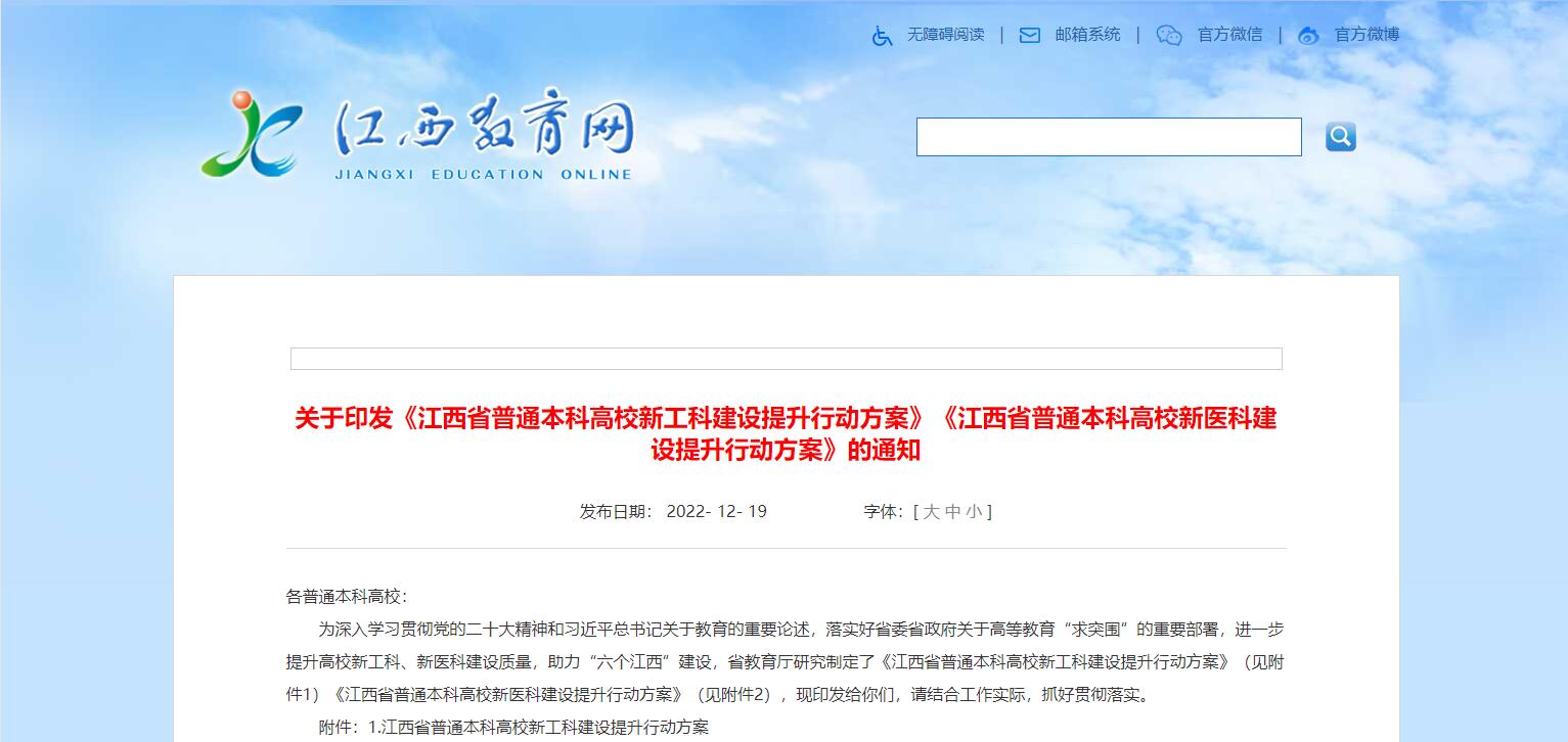 江西省教育廳發(fā)布《江西省普通本科高校新工科建設提升行動方案》《江西省普通本科高校新醫(yī)科建設提升行動方案》