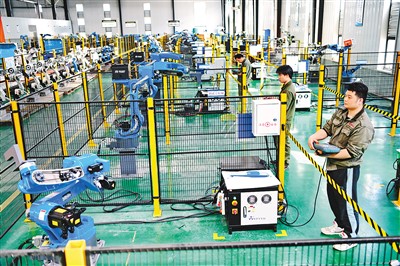 近年來,江西省贛州市加強青年技術人才技能培訓,促進適齡青年實現(xiàn)技能成才。圖為贛州市贛縣區(qū)的一家智能裝備制造企業(yè)內(nèi),幾名青年技工在加緊調(diào)試出口的工業(yè)機器人訂單產(chǎn)品。   朱海鵬攝(人民視覺) ......