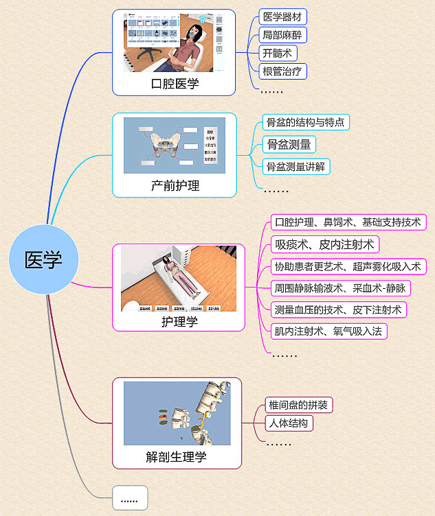 醫(yī)學(xué)專業(yè)課程的開(kāi)發(fā),主要是結(jié)合當(dāng)下學(xué)生所接觸的教材資源進(jìn)行制作,嚴(yán)格遵循“教材繼承性與創(chuàng)新性結(jié)合的原則”,運(yùn)用三維動(dòng)態(tài)交互,把抽象的操作知識(shí)要點(diǎn)運(yùn)用3D的形式直觀形象的展現(xiàn),同時(shí)還增添有實(shí)訓(xùn)模塊,可以動(dòng)手模擬操作,力求在學(xué)科教學(xué)的同時(shí),增加其趣味性及其互動(dòng)性,使其與其他層次的同類教材有所區(qū)別,注重強(qiáng)化學(xué)生的能力培養(yǎng)。
