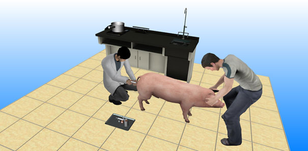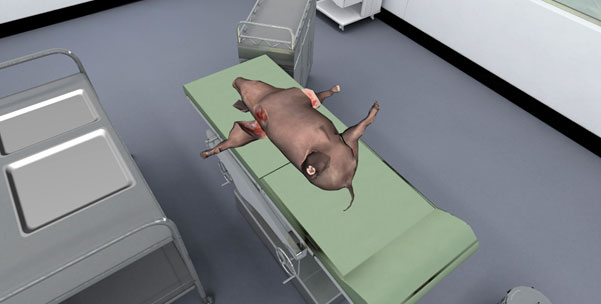 按照動(dòng)物真實(shí)的尺寸,提供仿真三維模型,展示動(dòng)物體表與內(nèi)部器官真實(shí)結(jié)構(gòu),讓學(xué)生能清楚知道各主要臟器在動(dòng)物體內(nèi)的大致位置。以3D的形式來(lái)展現(xiàn)動(dòng)物解剖的工作場(chǎng)景,有效解決了實(shí)際操作中的解剖成本高、損耗大等一系列問(wèn)題。