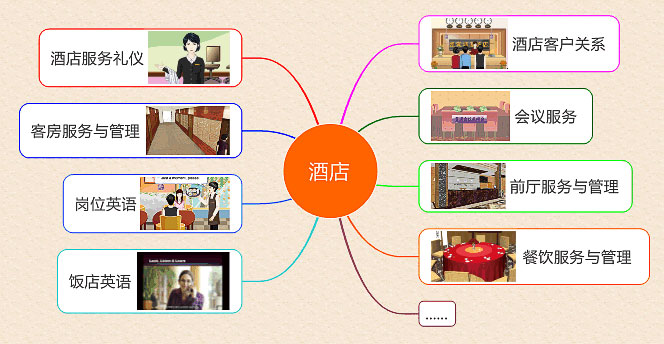 酒店客戶關(guān)系、酒店服務(wù)禮儀、會(huì)議服務(wù)、前廳服務(wù)與管理、餐廳服務(wù)與管理、客房服務(wù)與管理、崗位英語、飯店英語、理論知識(shí)、多媒體教學(xué)、實(shí)訓(xùn)互動(dòng)、題庫、考核。